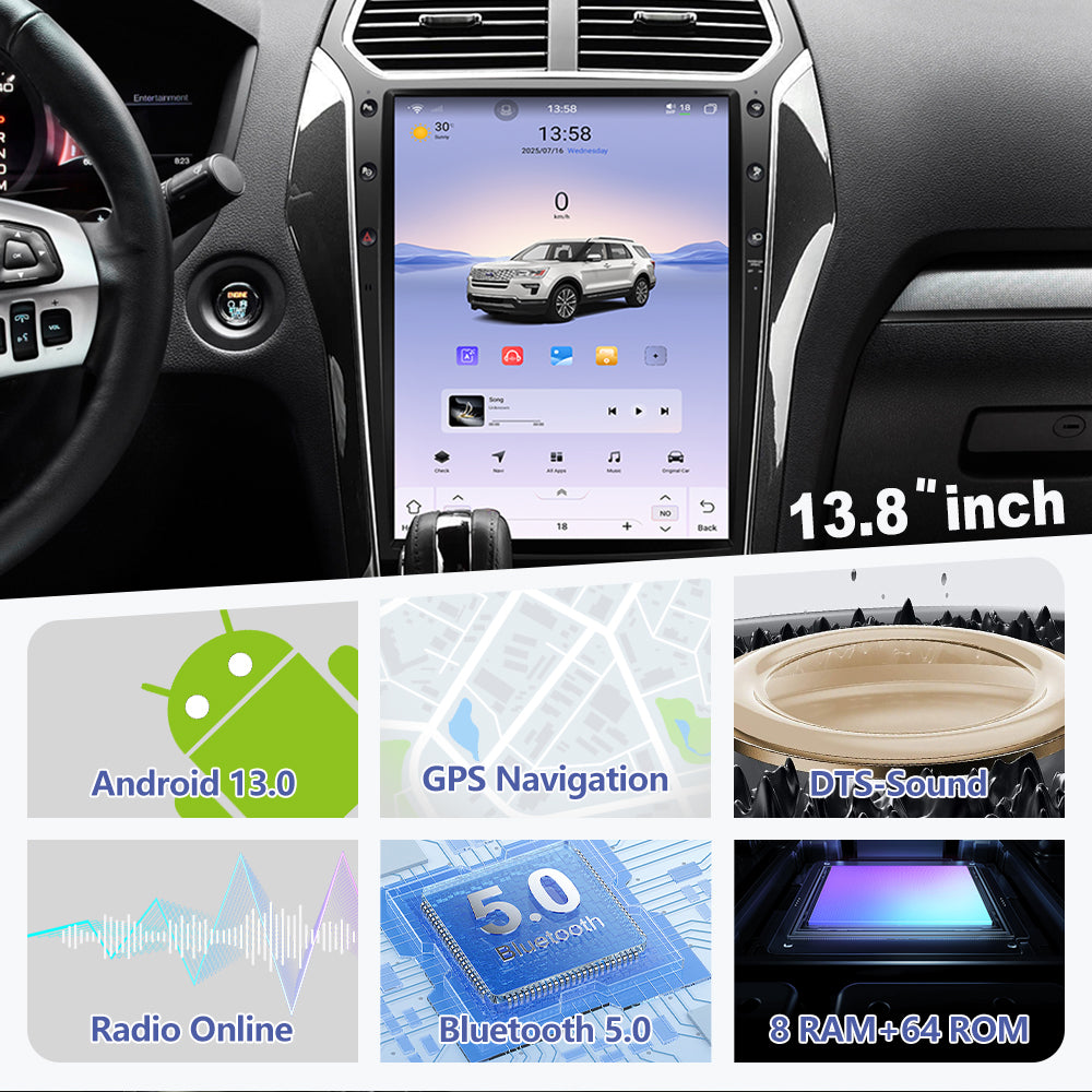 13.8 inch for Ford Explorer Dashboard - (2010-2019) Touch Screen Android Auto carplay